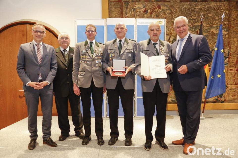 "Nehmen Sie diese hohe Auszeichnung auch als Ansporn, in Ihrem wichtigen Engagement nicht nachzulassen. Machen Sie weiter so - zum Wohle des Sports, unseres Landes und seiner Menschen", so Herrmann laut Pressemitteilung des Ministeriums. Die Urkunden und die Plakette verliehen Innenminister Joachim Herrmann - zusammen mit BLSV-Präsident Jörg Ammon und dem Ersten Landesschützenmeister Wolfgang Kink. Zusammen mit den Waldsassenern sind sechs bayerische Sportvereine geehrt worden: TSV Obernsees von 1909 (Oberfranken), TSV 1893 Emskirchen (Mittelfranken) und aus Unterfranken ESV "Bavaria" Gemünden am Main sowie TuSpo Sommerau 1919 und der SV Heidingsfeld 1919.