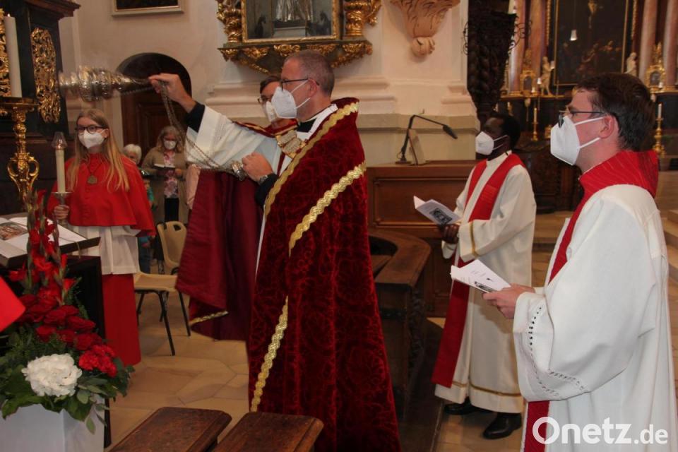 Zu Beginn des Festgottesdienstes freute sich Stadtpfarrer und Dekan Dr. Thomas Vogl über den Besuch aus Regensburg. Weiter wies er darauf hin, dass die Heiligen Leiber im September 2020 in die tägliche Fürsprache aufgenommen worden seien, so dass Waldsassen und das Stiftland vom weiteren Pandemie-Verlauf verschont bleiben. Die Heiligen Leiber werden seit jeher auch angebetet, um die Region von schweren Unwettern zu verschonen.