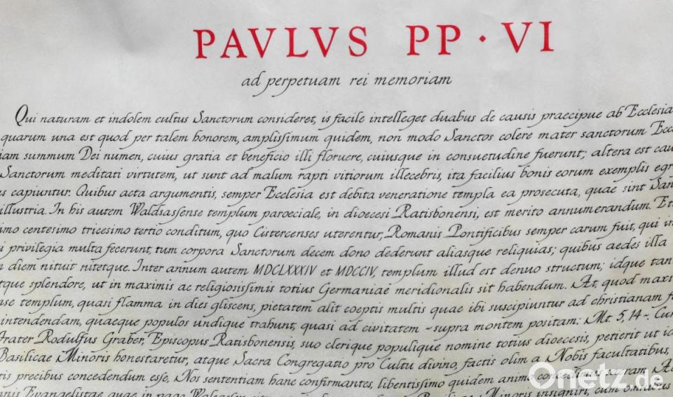 Im kirchlichen Leben zeige sich das im kontinuierlichen Rückgang der Gottesdienstbesucher, in steigenden Kirchenaustritten, im Bindungsrückgang bei Verbänden und Gruppen. Das Thema "Missbrauch" habe einen verheerenden Einblick in ein dunkles Kapitel der Kirche gewährt, dessen Folgen noch lange nachwirken würden. Aber Kirche sei, auch wenn ihr das Kritiker nicht zutrauten, lernfähig. "Die Urkunde zur Erhebung durch Paul VI. ist noch nie übersetzt worden", sagt der Pfarrer, das werde aber gerade aktuell nachgeholt. Was der Titel eigentlich bedeutet und welche Rechte und Pflichten er für Pfarrei und Stadt mit sich bringt, wollen die Oberpfalz-Medien" vom Stadtpfarrer wissen. Grundsätzlich handle es sich um einen Ehrentitel, so Vogl. Diesen verleihe Rom weltweit an bedeutende Kirchen, um sie besonders hervorzuheben. Etwa weil sie für eine Region von besonderer Bedeutung seien, sowohl geschichtlich und baulich als auch von der geistlichen Ausstrahlungskraft her. In Waldsassen habe ganz bestimmt eine Rolle gespielt, dass die Basilika ganz stark mit der Geschichte des Klosters verbunden sei. Eine ganz besondere Rolle für die Verleihung des Titels spiele aber auch die Antwort auf die Frage "Wie wird denn dort der christliche Glaube umgesetzt, gelebt und praktiziert?"