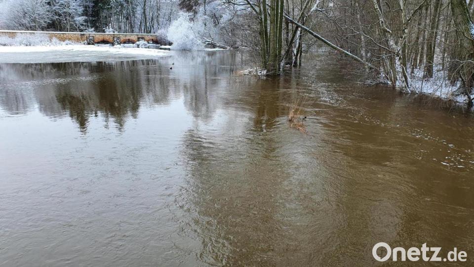 Nach den Niederschlägen und dem folgenden Tauwetter trat die Wondreb im Stadtgebiet Waldsassen über die Ufer. Auch eine bei Spaziergängern beliebte Route war betroffen.