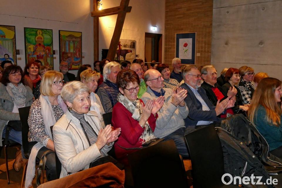 Vorurteile überwinden war die Botschaft in einer Geschichte über die beste Freundin Lisa, die plötzlich psychisch schwer erkrankt ist. "Tierisch" lustig wurde es, als Irmtraud Schicker von besagter Wespe erzählte. Josefine war ein zahmes Insekt, das in einem kleinen Laden im Saarland, an der Grenze zu Frankreich, von der Ladenbesitzerin geduldet wurde. Sie löst einen angeregten Diskurs über "Sein oder Nichtsein" einer Wespe im Süßigkeitenregal eines Ladens aus. Bis die arme Josefine am Ende mit einem Croissant in eine Tüte der Erzählerin gerät. Bevor diese die Wespe zurückbringen kann in den Laden, entwischt Josefine aus dem Autofenster. Draußen ist es bitterkalt. Aus die Maus für Josefine, die herzlich belacht wurde. Jetzt durfte sich das Publikum ein weiteres Mal ausruhen vom Zuhören, mit selbstgemachter Musik der beiden Musiker Werner Müller und Wolfgang Kunz.