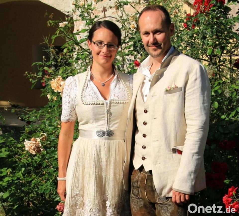 Der weltliche Teil der Hochzeitsfeier fand im Schlosshotel in Ernestgrün statt. Kennengelernt haben sich Judith Runge und Bernhard Meyer beim Gäubodenfest in Straubing, deshalb heirateten sie auch in Dirndl und Lederhose. Das junge Paar wird künftig in Pegnitz wohnen.