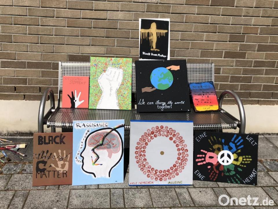 Das Werte-Abschlussprojekt für dieses Schuljahr bildete ein dreitägiges Sommeratelier der Klasse 9M mit Künstlerin und Kunsttherapeutin Annette Hähnlein. „Frau Hähnlein ist an unserer Schule keine Unbekannte“, so Schulleiterin Claudia Strobel-Dietrich. „Schon zum dritten Mal leitet sie eine Projektwoche, bei der diesmal unter ihrer fachkundigen und einfühlsamen Anleitung die Atelierteilnehmer ihre Lieblings-Wertesprüche finden und ausdrucksstarke Schrift auf Leinwand gestalten konnten. Nach einer Einführung zum Thema „Rassismus“ und zu verschiedenen Gestaltungsmöglichkeiten und Schriftarten entwickelten die Jugendlichen ihr individuelles Schrift- und Bildmotiv.