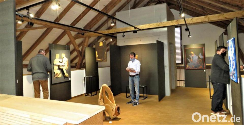 Sonntagmorgen im Kunsthaus Waldsassen: Fünf Männer bewegen sich durch die drei Stockwerke, alle mit Mund-Nase-Schutz und auf Abstand, die eine oder andere Schweißperle fließt. Eingehend betrachten sie die Werke der aktuellen Gemeinschaftsausstellung des Vereins Kunsthaus Waldsassen. Manche Skulptur muss dafür, wenn auch ansonsten nicht erlaubt, angefasst oder kurz umgedreht werden. Bei so mancher Malerei wandern die Augen immer näher zu einem Detail. Bei dem Quintett handelt es sich um eine Jury - und ihre Aufgabe besteht darin, zu ermitteln, wer den ersten Waldsassener Kunstpreis erhalten soll.