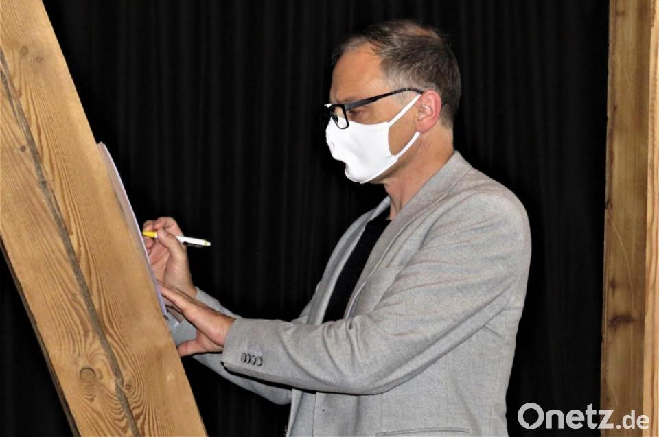 Ist die Vorauswahl getroffen, soll jeder Anwesende anonym einen Bewertungsbogen befüllen. 400 Punkte sind zu vergeben, unter anderem werden Ausdruckskraft, Kreativität und Innovation bewertet. Für Bürgermeister Bernd Sommer, der, wie er erzählt, schon einmal in einer Jury für Architektur mitgewirkt hat, ist die Bewertung von Kunst eine schöne, aber anspruchsvolle Aufgabe. Er habe sich bereits bei der Ausstellungseröffnung gemeinsam mit den Künstlern über deren Werke auseinandergesetzt, sagt er. "Das hat mir heute geholfen, weil ich die unterschiedlichen Beweggründe für die Arbeiten kenne."