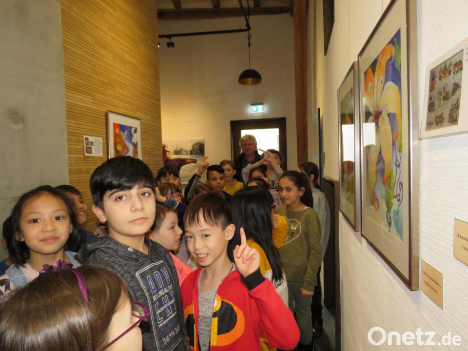 36 Kinder unter Betreuung von Silvia Engel und Monika Poss stürmten vor einigen Tagen die Kunstausstellung mit großem Hallo. Künstler Tom Brankovic, der bereits viel Erfahrung mit Jugendarbeit in Schulen und im Museumsquartier Tirschenreuth hat, zeigte den Buben und Mädchen die unterschiedlichen Gemälde und erzählte ihnen, wer sie gemalt hat.