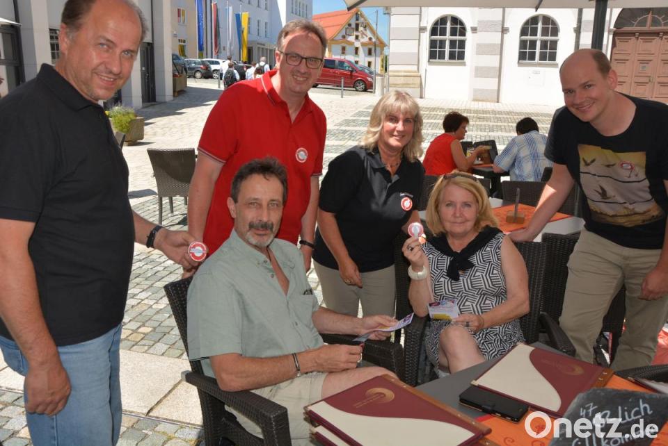Mitarbeiter von Kondrauer waren am Montag durch Waldsassen gezogen. Sie stellten der Bevölkerung ihre Pläne vor, warben um Unterstützung und verteilten Buttons mit dem Logo "Ja zum Standort Kondrau".