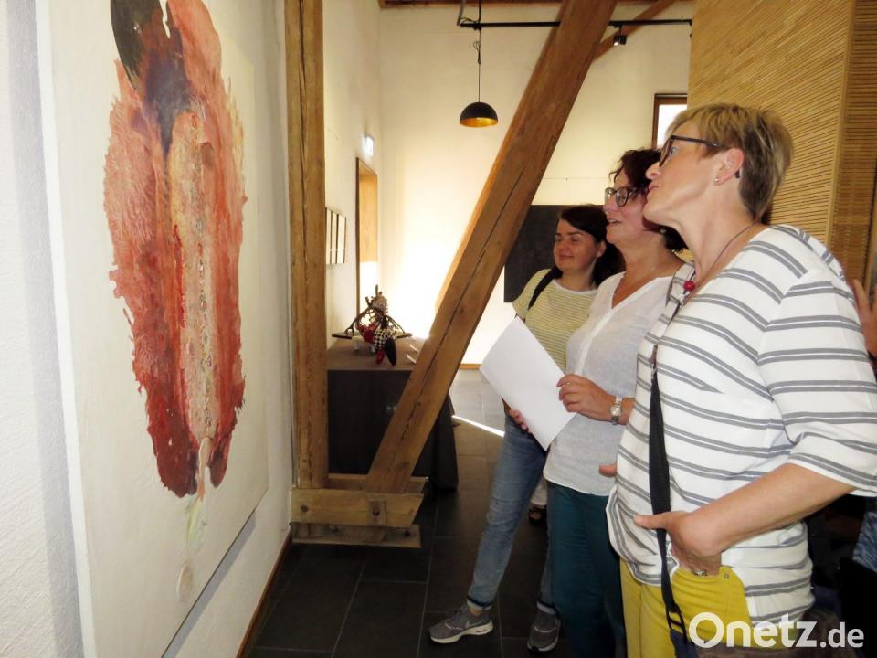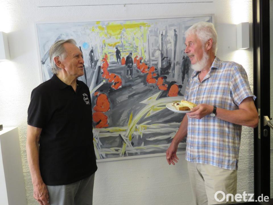 Die etwa 50 Interessierten ließen sich am Nachmittag von den Künstlern durch die Ausstellung führen oder schauten sich selbst ausgiebig um. Danach oder während der Besichtigung wurde das Angebot zu kostenlosem Kaffee und Kuchen inmitten von schönen Gemälden und exzentrischen Skulpturen gerne genutzt.