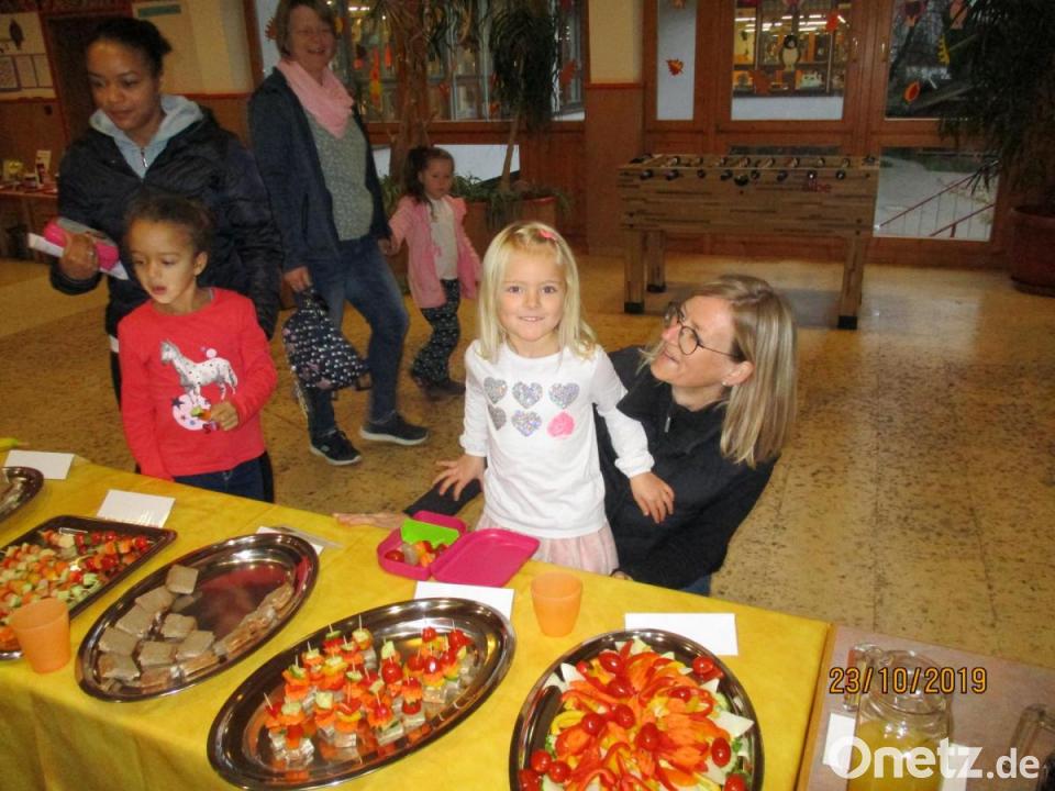 Das Befüllen von Brotzeitboxen und das Probieren gesunder Pausenbrot-Alternativen standen im Mittelpunkt. Jedes Kind durfte sich seine mitgebrachte Brotbox vom Büfett füllen. Mit Hilfe von Kita-Eltern bereitete Barbara Michalski, Referentin im Netzwerk Junge Eltern/Familie, ein abwechslungsreiches Büfett zu. Zur Auswahl standen Vollkornbrot mit Käse und Obst, Gemüsesticks mit Quark-Dip, Brotspieße mit Frischkäse und Gemüse, Vollkornbrot mit Leberwurst-Quark Aufstrich und Piratenspieße. Die selbsthergestellten kalorienarmen Durstlöscher heißen Biene-Maja-Tee, Traubentee und Apfellimonade und kamen bei den Kindern sehr gut an. Die Rezepte dazu gab es für die Eltern mit nach Hause.