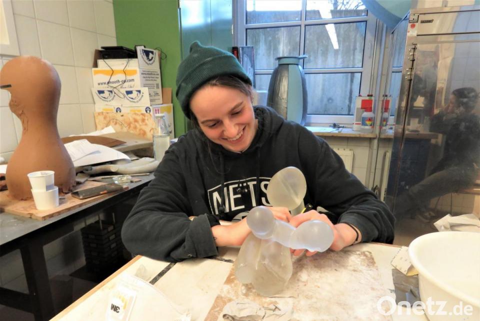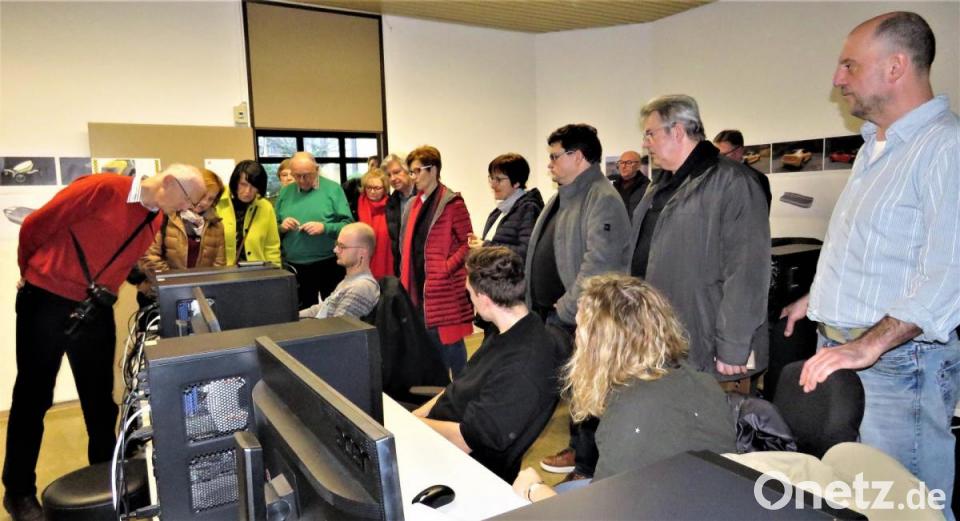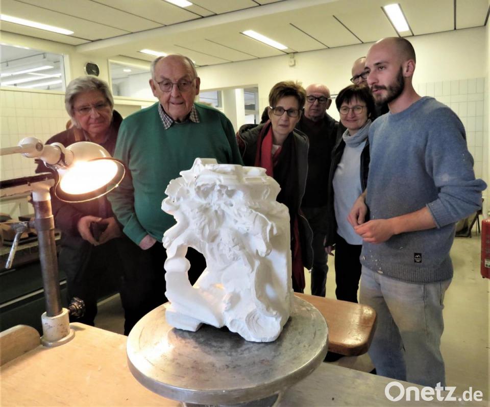 Viele der Gäste wussten nicht, dass die Einrichtung mit ihrem Lehrprogramm einmalig in ganz Europa ist. "Deshalb interessieren sich viele ausländische Schüler für uns, sogar weltweit", sagte Heinl. Die Aufnahmekriterien seien streng, großes kreatives Talent sei erforderlich. Besonders spannend fanden die Künstler die Werkstätten, wo die Schüler nicht am PC, sondern noch per Handarbeit eindrucksvolle Werke nach Vorgaben oder freischaffend designen. Heinl stellte seinen Schüler, den 25-jährigen Manuel Sevilla, als hochbegabten jungen Mann vor. Seine kunstvollen Plastiken aus Gips nahmen die Kunsthaus-Mitglieder ausgiebig unter die Lupe.