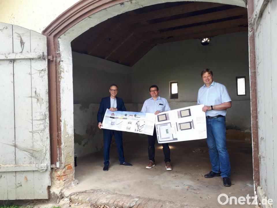 "Der Raum ist groß", wunderte sich bei einem Ortstermin Bernd Sommer über die in dem Gebäude verfügbare Fläche und gestand: "Ich war hier noch nie drin." Im Jahr 1900 wurde die "Remise" errichtet; mit einbezogen wurde die Friedhofsmauer. Von einem Passanten am Friedhof hatte Planer Markus Braun vom Atelier Braun erfahren, dass um 1990 das Dach erneuert worden sein soll. Dort sollen zwei Fenster eingebaut werden, damit es innen heller wird.
