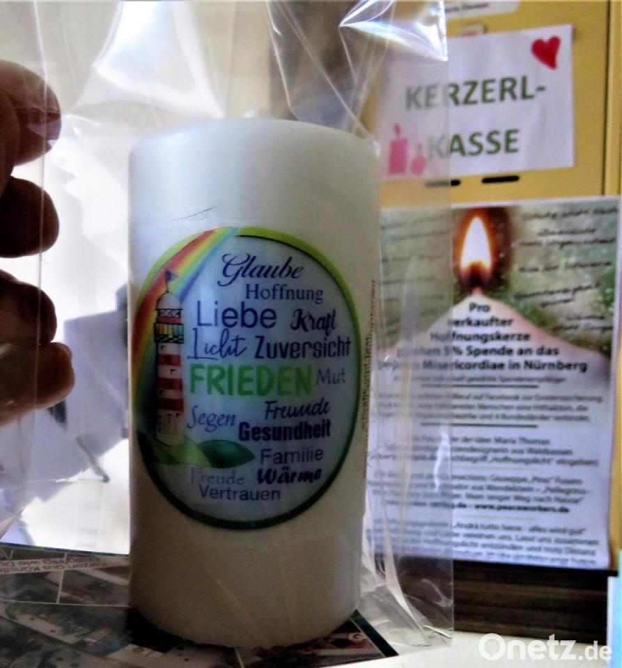 Die Kerzen gibt es bei Maria Thomas selbst. Im Eingangsbereich ihrer Kerzendesigner-Werkstatt in der Mitterteicher Straße 9 können sie kontaktlos mitgenommen werden. Für die Bezahlung steht ein Briefkastenfach bereit. Maria Thomas hat Notizzettel mit Kugelschreiber an eine Leine gehängt, auf dem die Käufer die Anzahl und Größe notieren können. Dies sei für den Überblick gedacht, sagt sie und fügt lachend an: "Den Kugelschreiber gibt es gratis dazu. So wird wirklich jeglicher Kontakt vermieden." Auch die Buchhandlung St. Peter sowie bei Optik Wurm in Tirschenreuth und Edeka Legat in Waldsassen verkaufen die Kerzen.