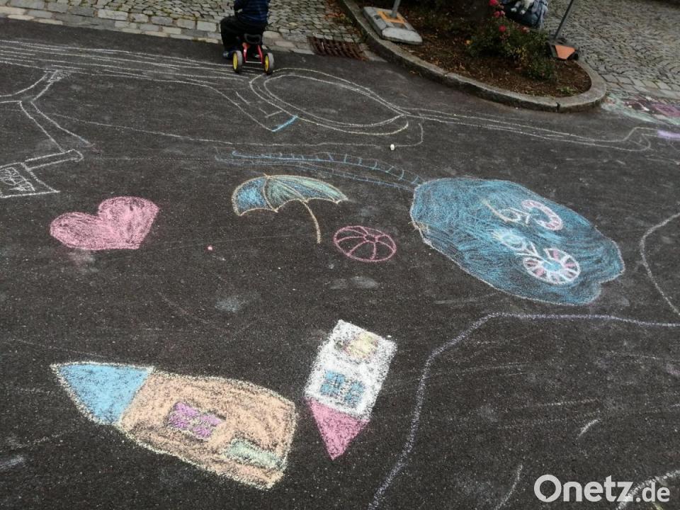 So sei mit Straßenmalkreiden eine besondere Stadt entstanden - mit Bauernhof, Burg, Feuerwehr, Polizeistation, THW, Schule, Kindergarten, Freibad, Bäckerei, Bank, Kirche, Süßigkeitenladen und vielem mehr. Nicht fehlen durften natürlich Straßen, Parkplätze und ein Kreisverkehr, schließlich sollte mit den Rädern, Rollern und Bobby-Cars alles gut erreichbar sein. "Beim gemalten Spielplatz wurde balanciert und gesprungen und beim Kästchenhüpfen hatten die Kinder genauso viel Spaß wie beim Aufmalen ihrer Umrisse auf der Straße", so die Veranstalter .