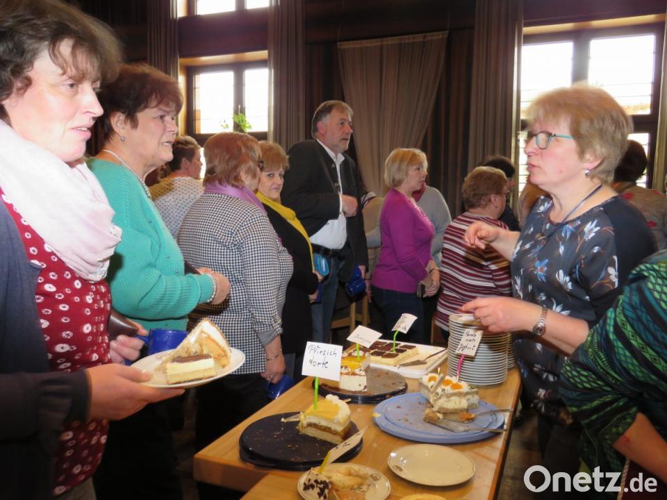 Selbst nach dem offiziellen Beginn um 14 Uhr strömten immer noch weitere Gäste zur Saaltür herein. "Wir haben sogar noch weitere Tische aufgestellt", freute sich die Kreisbäuerin über diesen Ansturm zum traditionellen Landfrauen-Kaffeekränzchen im Jugendheim. Während einige Gäste noch ihre Mäntel auszogen, holten sich die anderen schon ein Stück von den leckeren Torten und Kuchen, die am Kuchenbüfett aufgebaut waren. Elf Ortsbäuerinnen haben wieder 22 Kuchen gebacken.