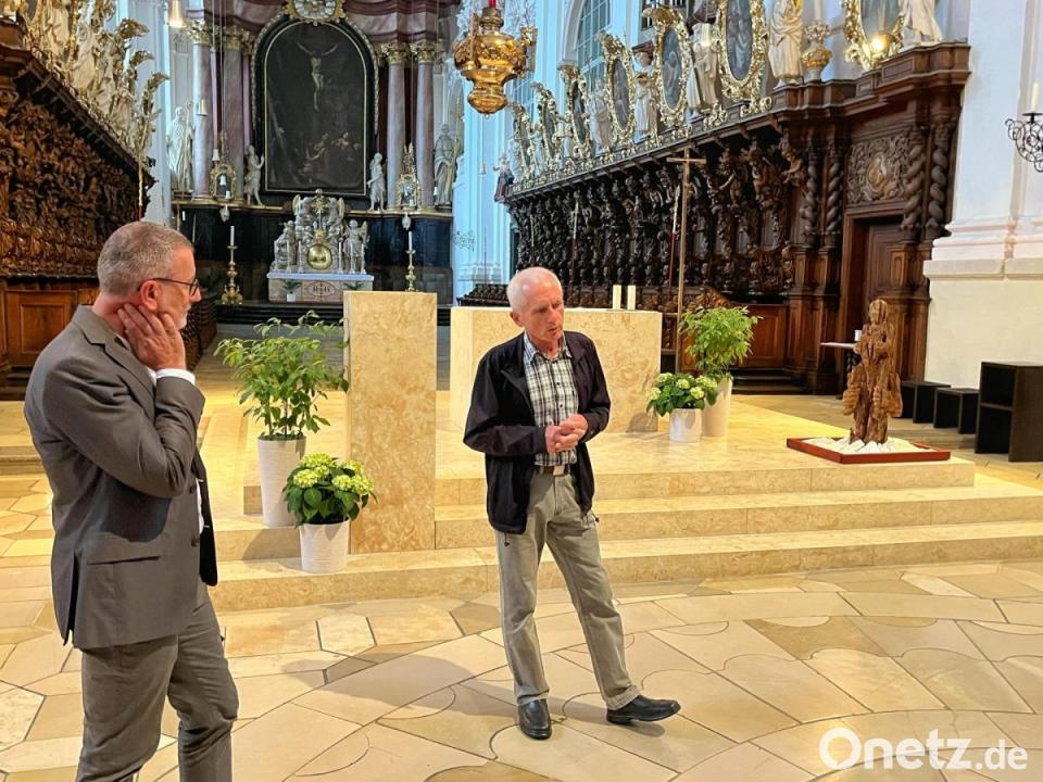 Die Skulptur „Tragen und getragen werden“ von Andreas Kuhnlein wird seit Montag aus Anlass eines Kunstprojekts des Bistums Regensburg in der Basilika Waldsassen präsentiert. Am Montag hat der Künstler aus Unterwössen im Chiemgau seine Arbeit vorgestellt und dabei über sich selbst und seine Arbeit gesprochen.