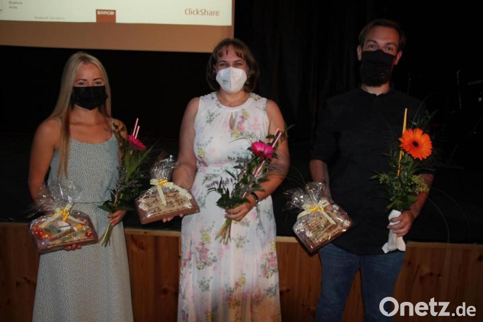 Im Rahmen der Schulentlassfeier der Mittelschule Waldsassen wurden auch drei Lehrkräfte verabschiedet: Alena-Sarah Kneidl, Sylvia Weiß und Benedict Grüner. Schulleiterin Claudia Strobel-Dietrich betonte: „Wir lassen euch schweren Herzens ziehen.“ Denn die drei hätten sich hervorragend in das Lehrerteam eingebracht.