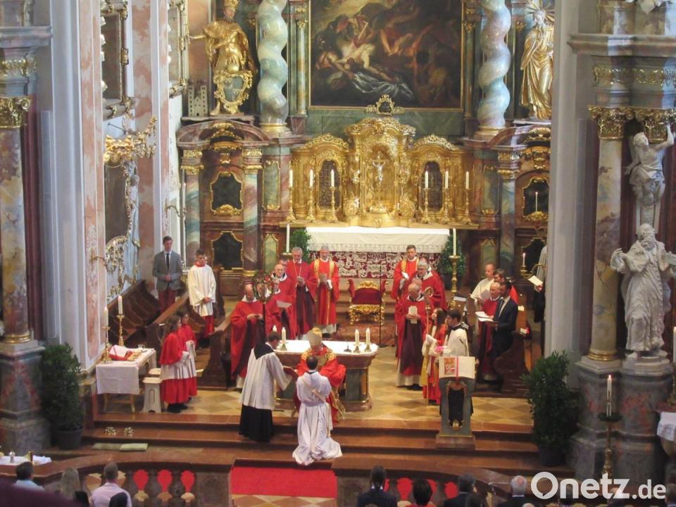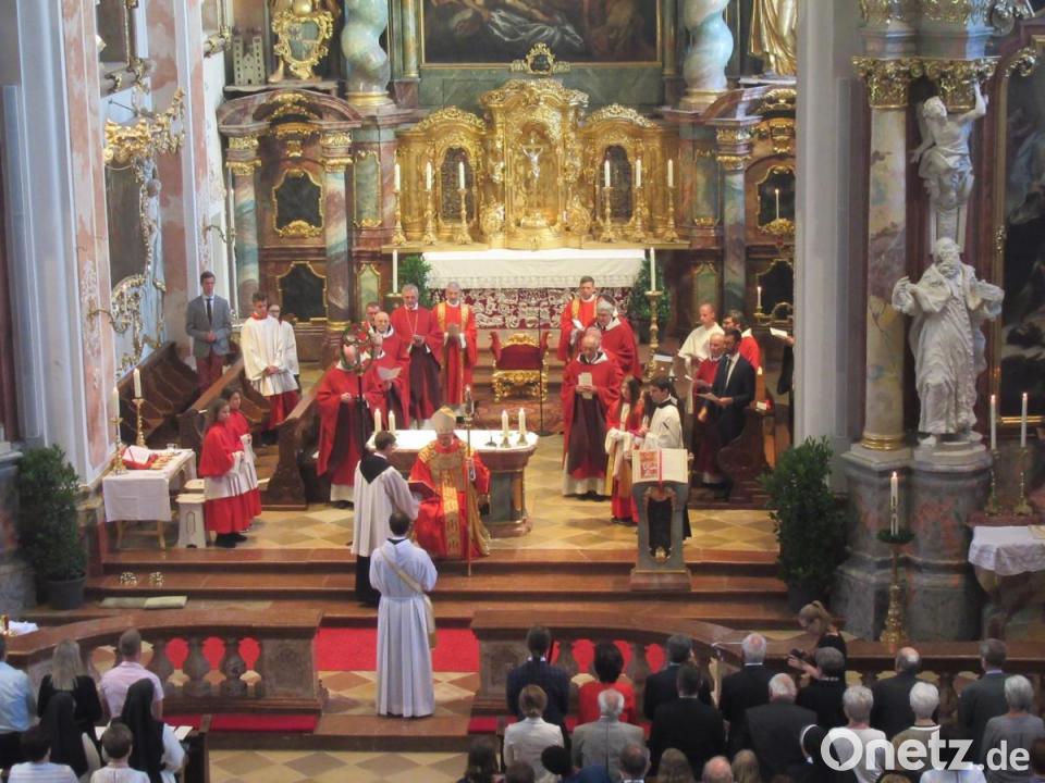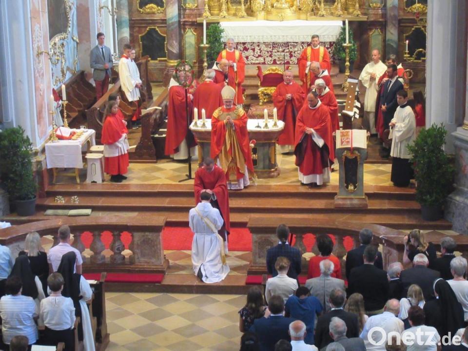 Abt Wolfgang M. Hagl mit dem Konvent, Heimatpfarrer Robert Gigler aus Mengkofen, Waldsassens Stadtpfarrer Thomas Vogl und viele weitere Priester und Ordensleute begleiteten den Weihekandidaten in die Abteikirche. Dort feierten die Eltern und Angehörigen zusammen mit vielen Gästen aus der Heimatpfarrei Mengkofen, aus der Praktikumspfarrei Waldsassen und natürlich aus Metten selbst den Weihegottesdienst mit.