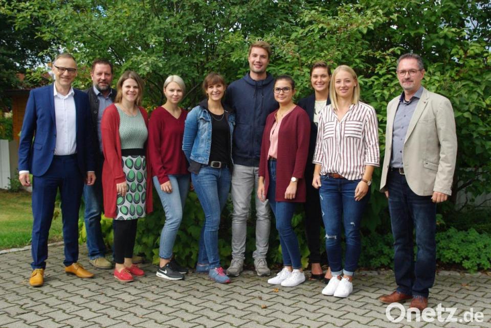 Bürgermeister Bernd Sommer begrüßte zusammen mit der Schulleitung die neuen Lehrkräfte. Im Bild von links Bürgermeister Sommer, Konrektor Reiner Summer, Teresa Kneidl und Christina Graßl (Lehrerinnen mit Arbeitsvertrag), Studienrätin Barbara Strenge, Studienreferendar Marius Längenfelder, Studienreferendarin Carina Nestmeyer, Studienrätin Cornelia Legath, Studienrätin Franziska Häring und Realschuldirektor Stephan Drexler.