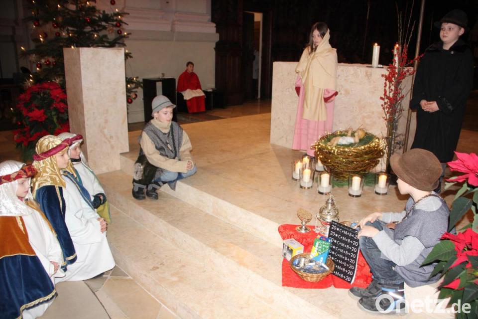 Gemeindereferentin Gertrud Hankl sagte zu Beginn des Gottesdienstes: "Wir haben uns heute Abend auf den Weg gemacht, um das Jesus-Kind zu finden. Wir suchen es wie die drei Weisen aus dem Morgenland." 51 Sternsinger werden am Freitag und am Samstag sich auf den Weg machen und Jesus in die Häuser zu tragen. Statt einer Predigt ging die Gemeindereferentin mit Szenen aus dem Krippenspiel, das in der Kindermette aufgeführt wurde, auf die Bedeutung von Christi Geburt ein. Sie ging auf die Herbergssuche von Josef und Maria, die Krippe im Stall, den Besuch der Hirten, den Ärmsten, und den Besuch der Heiligen Drei Könige aus dem Morgenland ein.