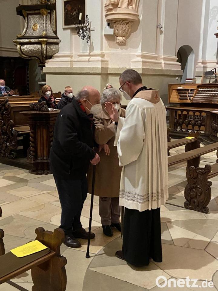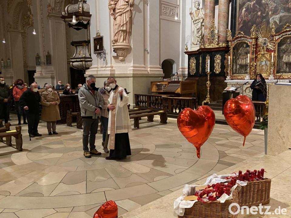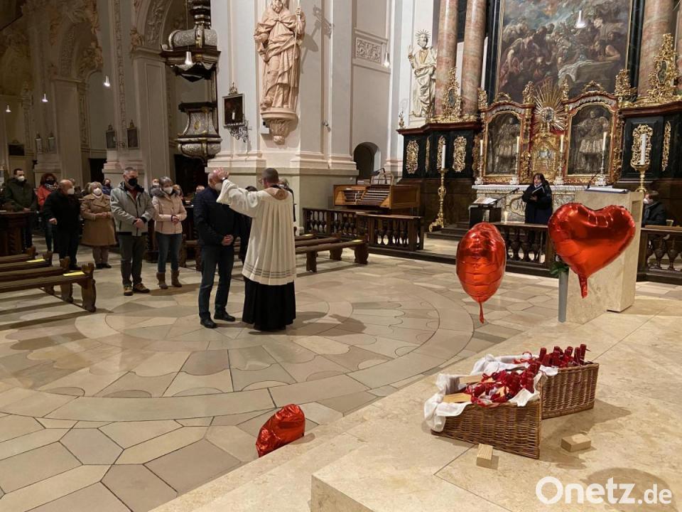 Im Anschluss wurden alle Paare einzeln von Stadtpfarrer Thomas Vogl gesegnet. „Der Segen ist nicht der Kirche vorbehalten, sondern er kommt von Gott.“, Der Seelsorger forderte die Paare auf, sich auch gegenseitig zu segnen.