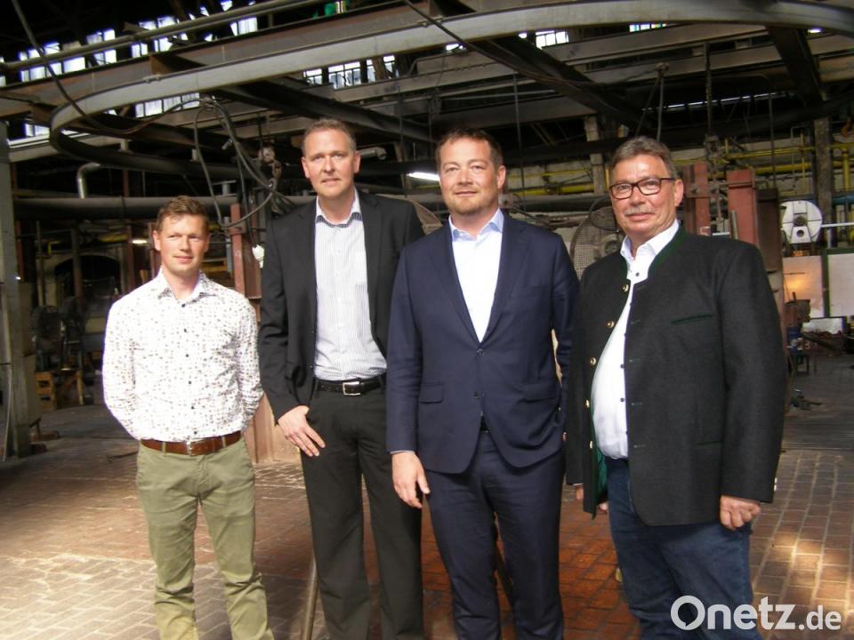 Der SPD-Bundestagsabgeordnete erfährt bei einem Besuch in der Glashütte Lamberts von den Problemen, mit denen der Traditionsbetrieb zu kämpfen hat. "Das ist ja alles nicht leicht", erklärt Rainer Schmitt. Der Geschäftsführer ist froh darüber, dass er mit Uli Grötsch eine Art Verbündeten hinter sich und den 70 Mitarbeitern weiß. "Wir versuchen in der Politik Unterstützung zu finden für das, was wir tun." Dass es sich bei der Arbeit der Glasmacher um ein Kulturerbe handelt, kommt bei dem Treffen immer wieder auf den Tisch.