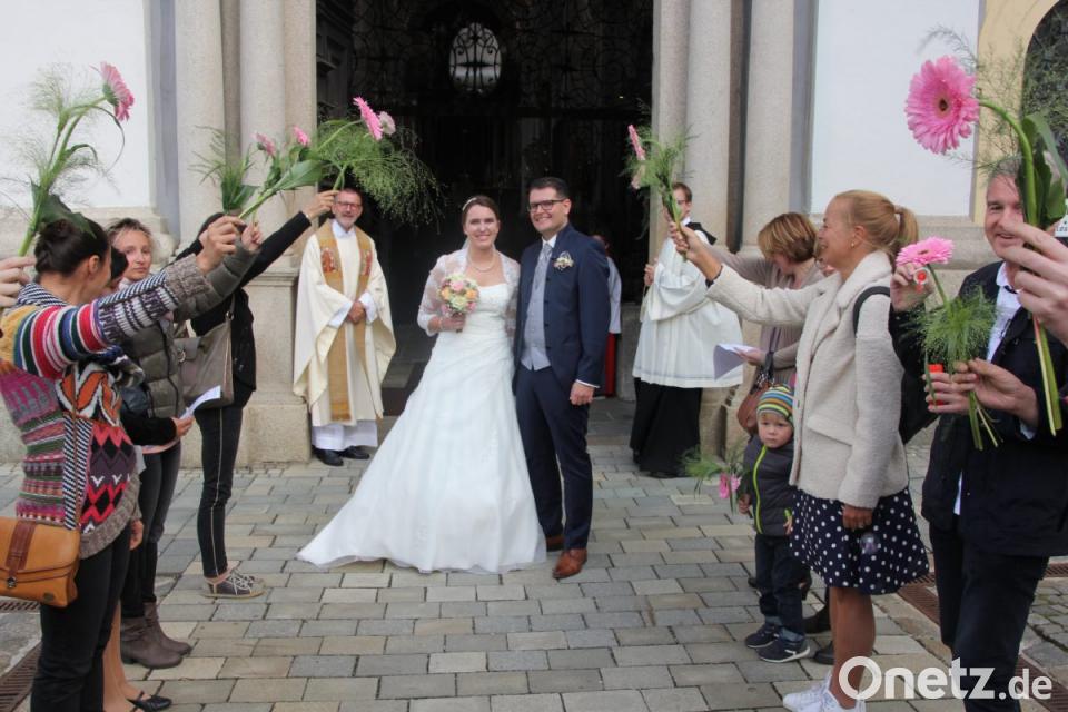 Die Trauung nahm Stadtpfarrer Thomas Vogl vor. Die Trauung wurde vom Basilikachor unter der Leitung von Andreas Sagstetter in eindrucksvoller und festlicher Weise gestaltet. Die Braut ist selbst aktives Mitglied im Chor. Beeindruckend vor allem das „Ave Maria“, gesungen von Gisela Malzer während der Kommunion-Austeilung. Nach der Trauung wurde das frisch vermählte und freudestrahlende Paar vom Musiktheater der Kreismusikschule Tirschenreuth ‒ dort ist auch die Braut mit dabei ‒ mit dem Lied „Ganz in Weiß“ von Roy Black erwartet. Der weltliche Teil der Hochzeitsfeier fand in der Gaststätte „Zur kleinen Kappl“ bei Ottengrün statt. Das junge Paar wird künftig in Waldsassen wohnen.