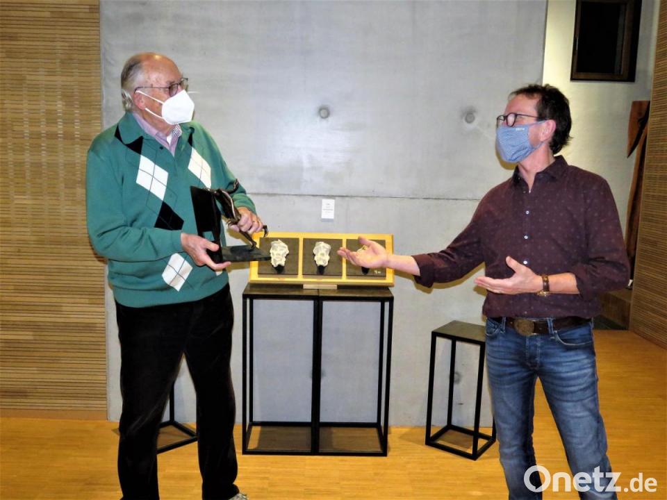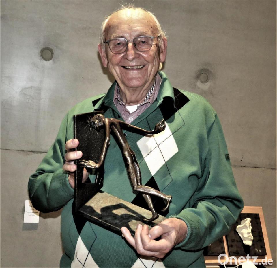 Hans-Georg Schulze kam der Bitte gern. Kurz darauf wurden seine Augen immer größer. Vorsitzender Wolfgang Horn teilte dem 89-jährigen Meister der Keramikplastiken mit, dass er als Träger des in der Vereinsgeschichte erstmals verliehen Kunstpreises Waldsassen nominiert worden sei. Hans-Georg Schulze konnte diese schöne Nachricht zuerst gar nicht richtig glauben und fragte, ganz im Stil seines feinsinnigen Humors und aufgrund seines Alters, ob es sich hier um einen Ehrenpreis handele. Horn beteuerte lachend, es handele sich wirklich um den neuen Kunstpreis des Vereins.