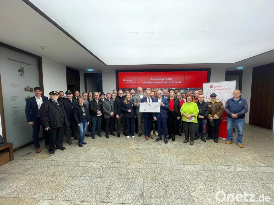 Die Sparkasse Oberpfalz Nord hat 28 Vereine und Institutionen in Waldsassen mit Weihnachtsspenden in Höhe von insgesamt 10.000 Euro unterstützt. Die Spenden stammen überwiegend aus dem Reinertrag des PS-Sparen und Gewinnen, teilt die Sparkasse in einer Pressemitteilung mit. Die Empfänger wurden auf Vorschlag des Bürgermeisters Bernd Sommer ausgewählt. Die Spendenübergabe fand im Rathaus in Waldsassen statt, wo er gemeinsam mit Landrat Roland Grillmeier, Hans-Jörg Schön, Vorsitzender des Vorstandes der Sparkasse, Jens Michael Heine, Mitglied des Vorstandes, Manuel Waller, Filialbereichsleiter, und Filialleiterin Kerstin Bogner die Spenden überreichten.