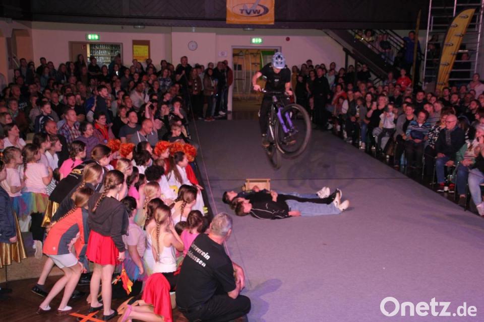 Ihr Können zeigten die vier Bauchtanzgruppen "Amira", "Bashira", "Thurrayya" und "Sheherazade" ebenso wie die drei Tanzgarden "Magic", "Amazing" und "LaConic". Für besonderes Aufsehen sorgten die Rhönradfahrerinnen, die in der nördlichen Oberpfalz ein Alleinstellungsmerkmal haben. Bei ihren Darbietungen gab es wiederholt kräftigen Szenenapplaus. "Rad-Akrobat" Simon Eckstein sprang unter anderem mit dem Bike über drei liegende Personen, die Karatekas und die Gruppe "Drums Alive" rundeten das sportliche Feuerwerk ab.
