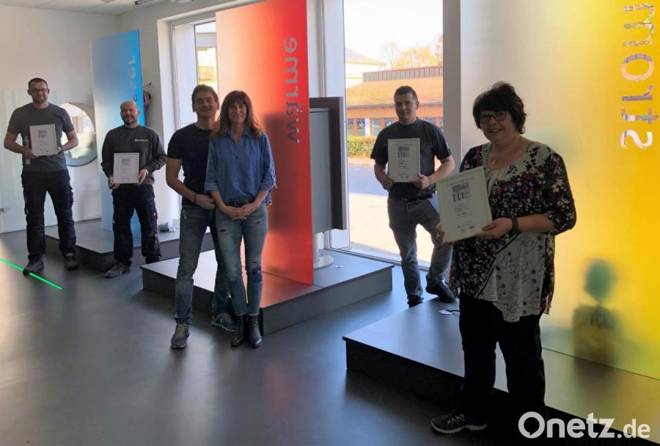 Die Geehrten erhielten eine Urkunde der Handwerkskammer. Zusätzlich gab es für Gerhard Hecht eine Gold-Anstecknadel. Die treuen Mitarbeiter durften sich außerdem über eine Anerkennung des Geschäftsführers Matthias Schmeller freuen.