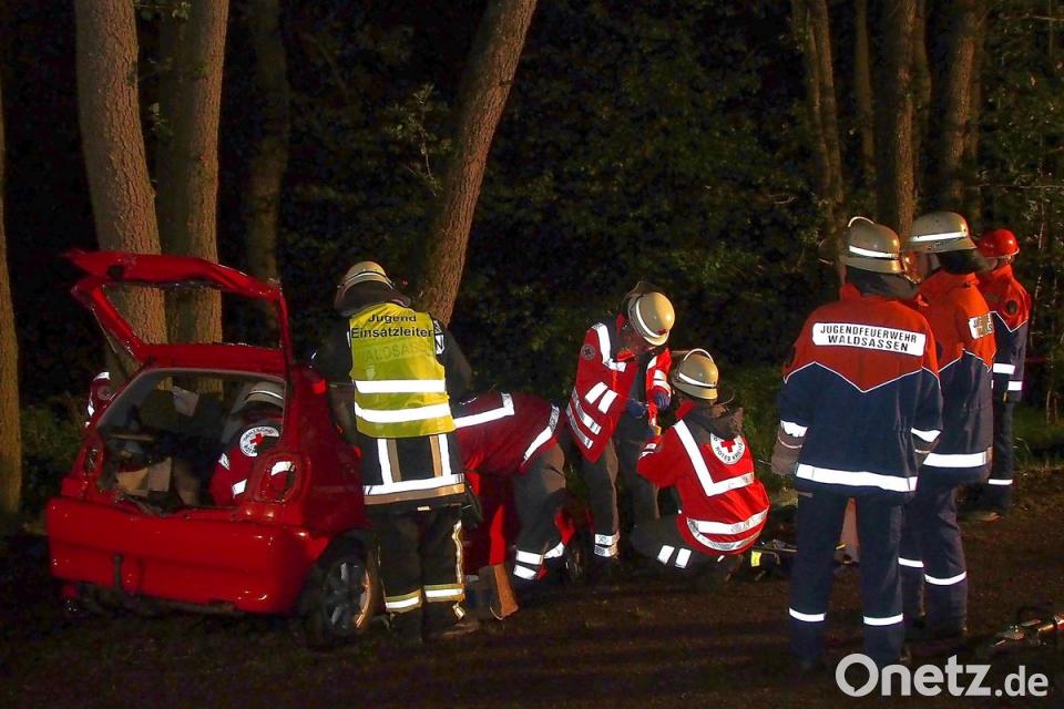 Mal war nur das BRK, mal nur die Feuerwehr, aber auch oft waren beide Organisationen gefordert. Die über 18-Jährigen durften sich dabei als Einsatzleiter oder Gruppenführer beweisen. Um sich das angenommene Szenario besser vorstellen zu können, schminkte das Team zur realistischen Unfall-Darstellung täuschend echte Wunden. Als Leitstelle fungierte die Funkzentrale im Feuerwehrgerätehaus.