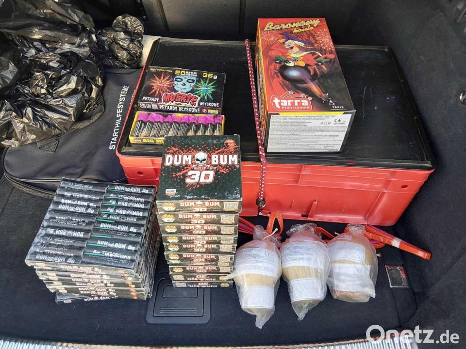 Am Dienstagvormittag kontrollierten die Beamten demnach einen 20-Jährigen, der aus Tschechien eingereist war. Obwohl er zunächst verneint habe, Pyrotechnik mitzuführen, fanden die Polizisten unter der Kofferraumabdeckung seines Fahrzeugs mehrere Feuerwerkskörper der Kategorie F4, heißt es im Bericht. Der Mann besitze keine sprengstoffrechtliche Erlaubnis, weshalb die Böller sichergestellt wurden.