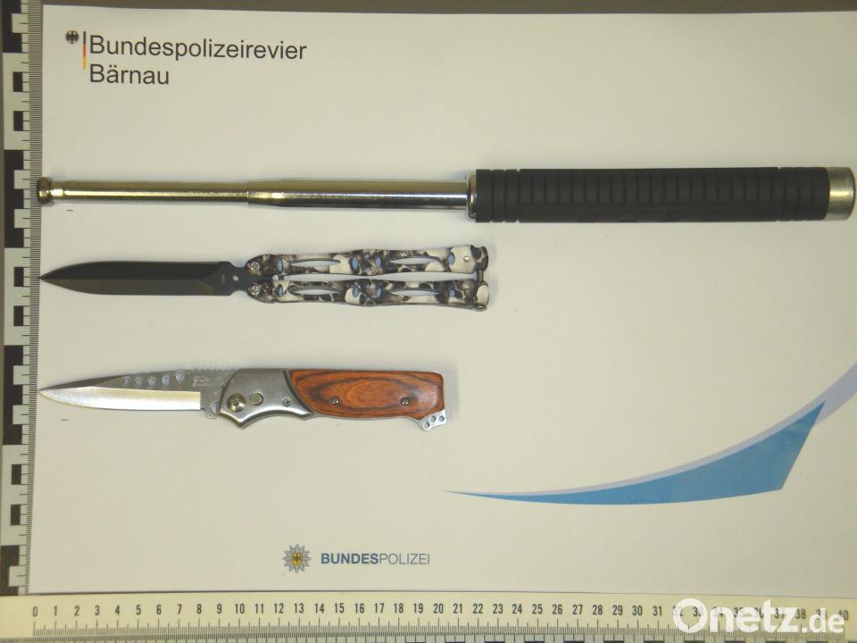 Bei einer Kontrolle in Waldsassen entdeckten Bärnauer Bundespolizisten in einer Plastiktüte im Handschuhfach des jungen Mannes ein Butterflymesser, ein Springmesser und einen Teleskopschlagstock. Im Polizeibericht ist zu lesen: "Nun wird das vermeintliche Schnäppchen doch teurer als gedacht." Die Polizisten die Schnäppchen und zeigten den Mann wegen Verstößen gegen das Waffengesetz an.