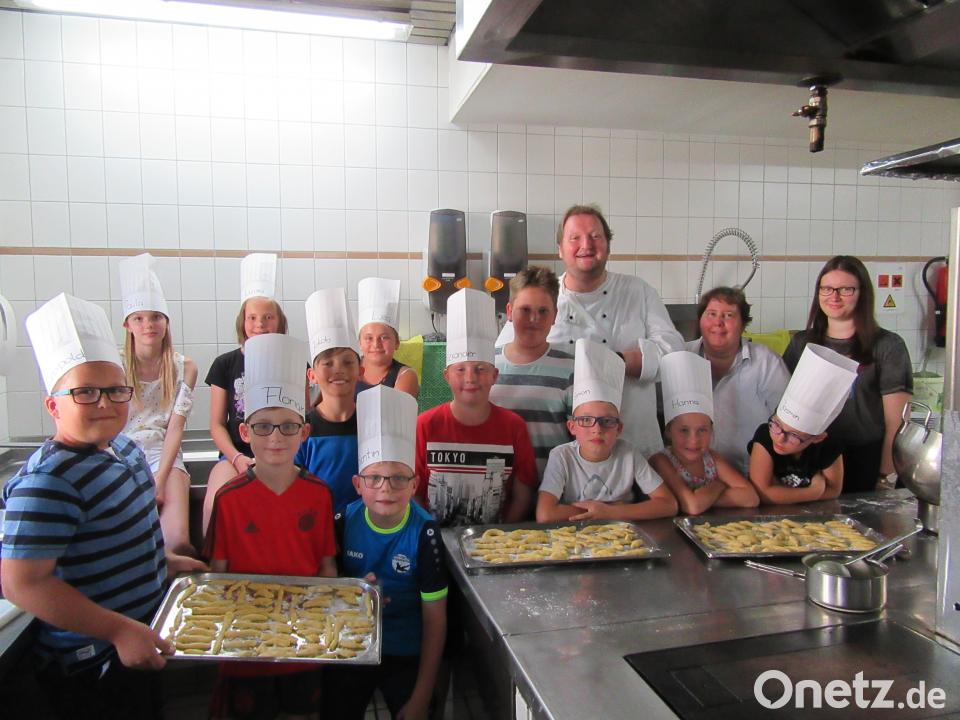 Eva-Maria und Thomas Urbanek boten im Ferienprogramm zusammen mit der Umweltstation der Abtei einen Kochkurs für Kinder an. Die Küchenchefs konnten mit Team-Assistentin Brigitte Sommer von der Umweltstation elf Kinder - sechs Buben und fünf Mädchen - begrüßen. Unterstützt wurden Evi und Thomas Urbanek von ihren Kindern Johanna und Christian. Er servierte zuerst einen von ihm zubereiteten Aperitif: Dabei durften die Mädchen und Buben zwischen "Krötenschnaps", "Rattenblut" und "Verrückter Affe" wählen. Für den Durst zwischendurch hatte Thomas Urbanek eine Limo mit Kräutern aus dem Naturerlebnisgarten angesetzt und kaltgestellt. In der Küche zeigte Eva Maria den Kindern, welche Zutaten zum Backen von Saftwaffeln benötigt werden. Danach durfte jedes Kind, angeleitet von Christian, am heißen Waffeleisen seine eigene Waffel backen, mit Puderzucker betreuen und noch warm verzehren. Danach waren bei Eva-Maria Urbanek starke Männer gefragt: Denn die gekochten Kartoffeln wollten für die Zubereitung von Schupfnudeln zerdrückt werden. Doch es fehlte dazu die nötige Kraft und die Küchenchefin musste den Job selbst erledigen. Später durften die Kinder ihre Fingerfertigkeit beim Rollen der Schupfnudeln zeigen. Danach gab die Küchenchefin Tipps zur Zubereitung von Zucchini-Spaghetti, Tomatensauce, Pizzanudeln und Grießnockerln. Danach zauberte Tochter Johanna Urbanek mit den Kindern noch den Nachtisch - einen Waffelbecher-Kuchen. Alles schmeckte den Kindern beim abschließenden gemeinsamen Essen einfach prima. Was man nicht schaffte, konnte als Kostprobe mit nach Hause genommen werden.