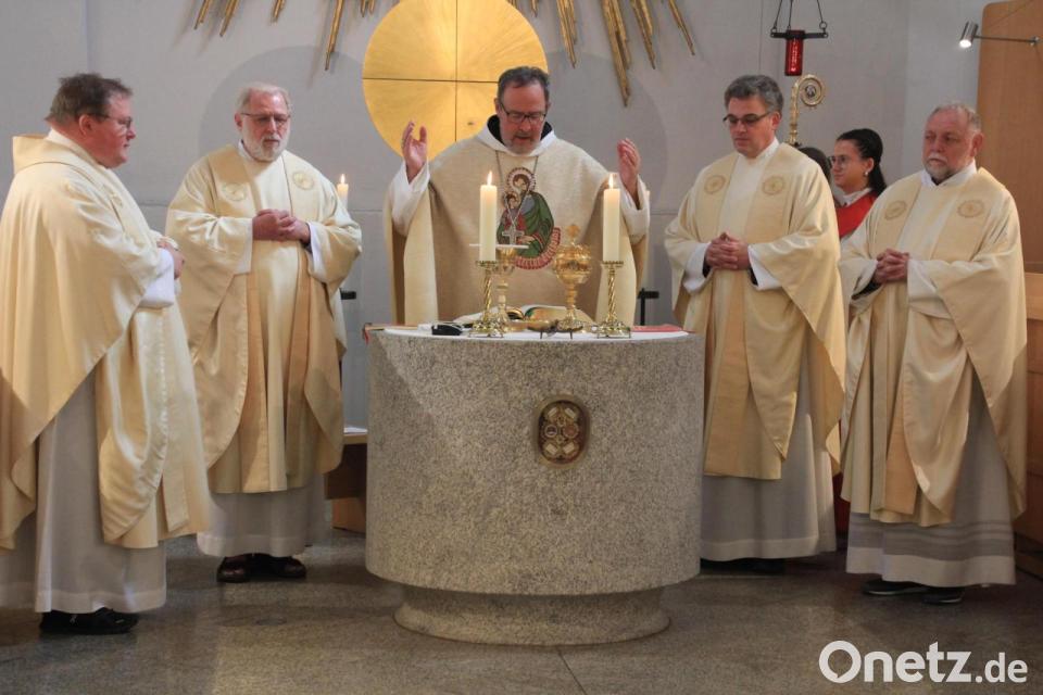 Den Auftakt der Feierlichkeiten bildete ein Festgottesdienst in der gut gefüllten Klosterkirche, den Abtpräses Vinzenz Wohlwend von der Zisterziensterabtei Mehrerau (Österreich) zelebrierte. Als Mitzelebranten wirkten Pater Benedikt Leitmayr aus Konnersreuth, Dekan Alfons Forster aus Michldorf und Dekan Simon Mayer aus Karlstadt, mit. In seiner Begrüßungsrede wies der Hauptzelebrant auf dieses Dreifach-Jubiläum hin, das in einer Abtei gefeiert werde, die im Stiftland ihresgleichen suche. „Der Ort strahlt Weisheit und Zukunft mit unserem Herrn Jesus Christus aus“, sagte Vinzenz Wohlwend.