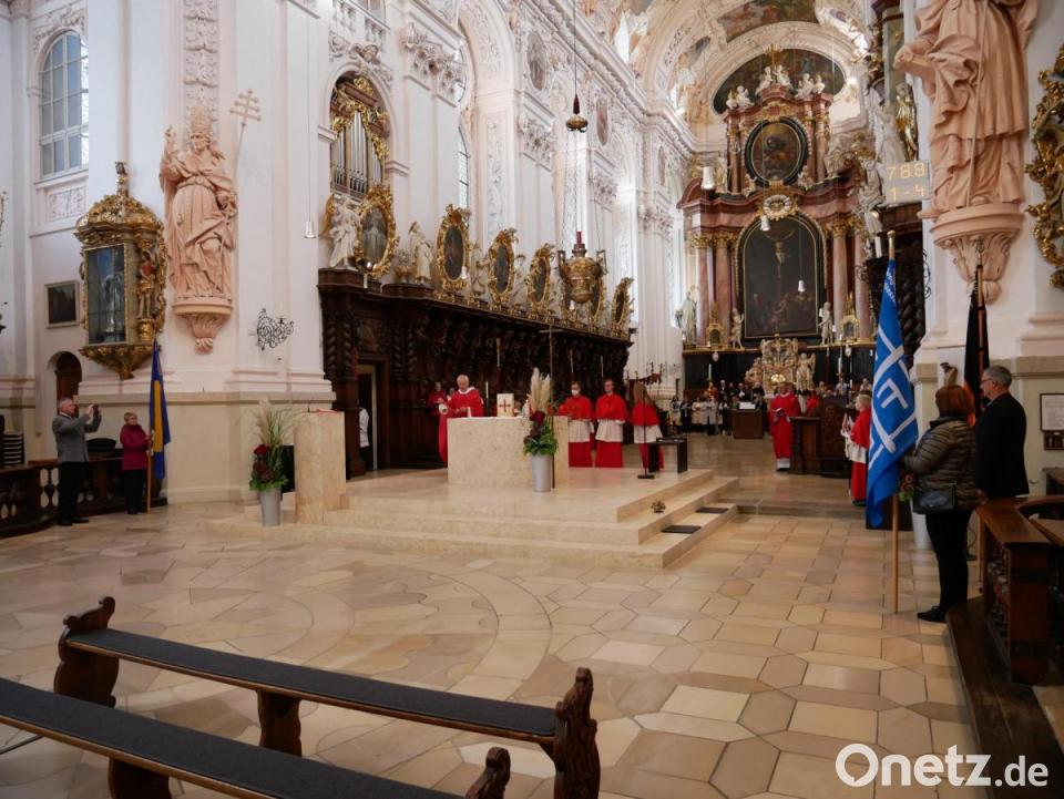 Den 16. Wallfahrtstag zum Geschändeten Heiland feierte die katholische Pfarrgemeinde Waldsassen am Sonntag in der Basilika. Vor dem Festgottesdienst mit Abtpräses em. Dr. Notker Wolf startete an drei Stationen im Stadtgebiet die Sternwallfahrt: Mitglieder der Katholischen Arbeitnehmerbewegung (KAB), des Katholischen Deutschen Frauenbundes (KDFB) mit der Vita-Gruppe und der Kolpingsfamilie pilgerten mit den Bannern und Fahnen der Vereine und Verbände zum Basilikaplatz und zogen gemeinsam mit den Zelebranten und dem liturgischen Dienst in die Basilika ein.