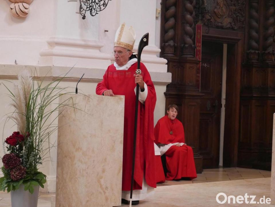In seiner frei vorgetragenen Predigt ging der emeritierte Abtpräses auf das von Pater Grillmeier vorgetragene Evangelium und die Figur des Geschändeten Heilands ein. Die in der Basilika aufbewahrte Christusfigur ohne Arme war bekanntlich im Februar 1951 an der deutsch-tschechoslowakischen Grenze beim Abriss der damaligen Wallfahrtskirche der kleinen Ortschaft Wies auf tschechischer Seite von einem Soldatentrupp geschändet worden. Ein deutscher Polizeibeamter der die Aktion beobachtet hatte, holte sie nach Abzug der Soldaten über die Grenze auf deutsches Gebiet und brachte sie dem damaligen Stadtpfarrer von Waldsassen. Seither wird der „Geschändete Heiland“ als Gnadenbild in der Basilika verehrt.