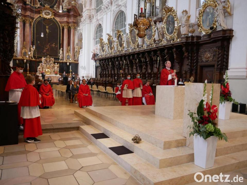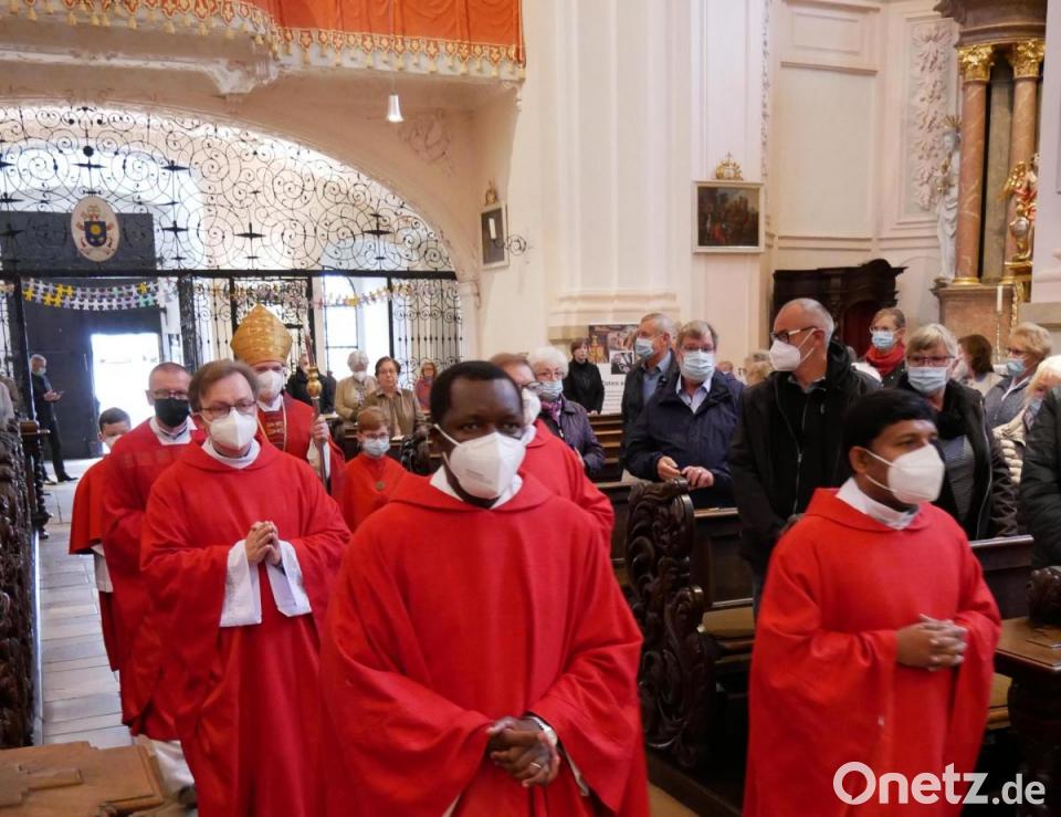 Als Konzelebranten wirkten Stadtpfarrer Dr. Vogl, die Pfarrvikare John Gali und Dr. Timon Ochieng Odeny mit sowie Pfarrer André Lommatzsch, der mit einer Gruppe seiner Ortsgemeinde St. Martin aus Dresden gekommen war, und Kolpingbezirkspräses Pfarrer Michael Alkofer, der mit 50 Mitgliedern des Kolpingbezirksverbandes Regensburg teilnahm. Musikalisch gestalteten der Basilikachor mit Blechbläsern und Franz Ballon an der Orgel unter der Leitung von Kirchenmusikdirektor Andreas Sagstetter den Gottesdienst.