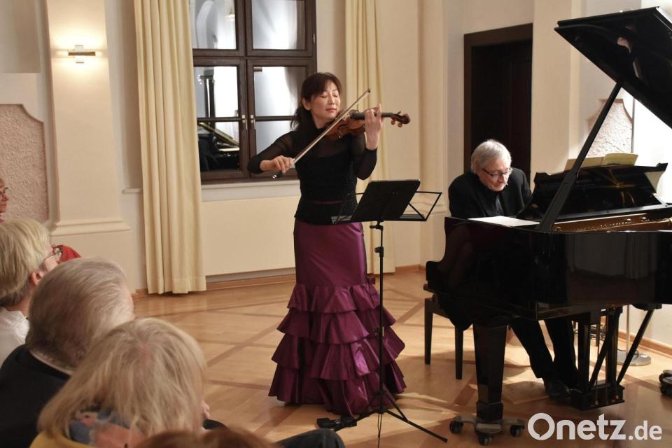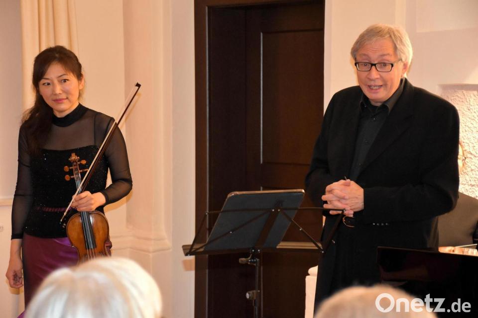 Der exquisite Abend begann mit der Sonate für Violine und Klavier Nr. 7 c-Moll op. 30 Nr. 2 von Beethoven. Yamei Yu und Rieger stiegen sogleich rasant ins Programm ein mit Steigerungen, die umgehend zum ersten großen Applaus führten. Erklärungen zur Sonate ließen durchklingen, wie Beethovens Werk mit dem Themenabend harmoniert. Lachend erklärte Rieger, Beethoven habe dieses Stück für den Zaren Alexander geschrieben, weil es ums Geld ging. „Er musste etwas verdienen und bediente gern liquide Kunden.“ Dass einige Parts mitunter für die Zuhörer schwierig seien, habe den Komponisten nicht abgehalten, sie dennoch zu schreiben. Weiter ging es mit einer Sonate des Franzosen Maurice Ravel. Hier kamen Blues und Hardrock ins Spiel. Was das mit Klassik zu tun hatte, davon durfte sich das Publikum gern beim etwas anderen Ohrenschmaus selbst überzeugen.