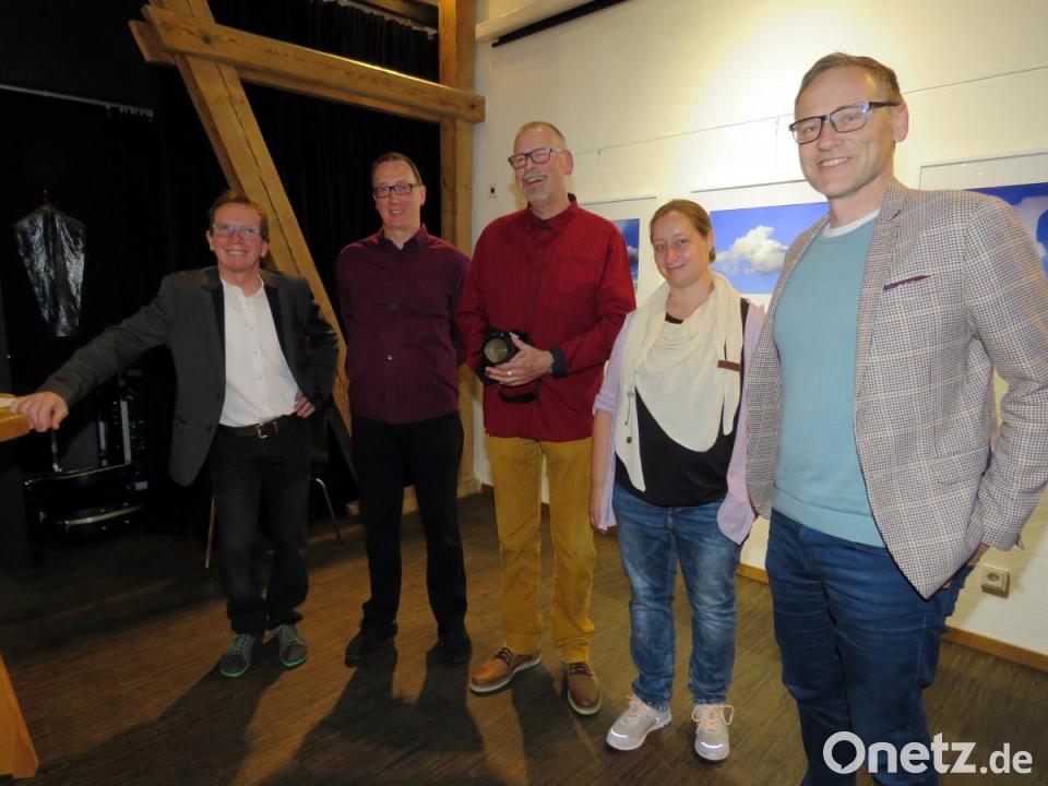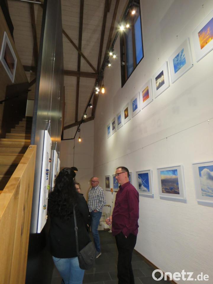 Jürgen Klein freut das sehr. "Ich hätte mich da nicht hinauf getraut", gibt er schmunzelnd bei der Vernissage zu und ist seinem Freund sehr dankbar für dessen Hilfe bei den stilistisch dazu passenden Vorbereitungen zur Ausstellung. Kleins "Höhenflug" ist in jeder Hinsicht ein Augenschmaus für den Betrachter. Gut 60 Wolkenbilder werden gezeigt. "Hier ist der Himmel viel schöner als in Oberbayern", scherzte der Fotograf, der seit 2014 Waldsassen als seine Wahlheimat auserkoren hat.