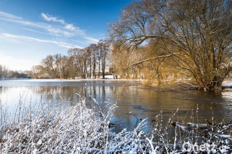 Die Wondreb bei Waldsassen in der Nähe der Straußenfarm Mitterhof. Die Schneeschmelze hat die Wondreb hier stark anschwellen lassen.