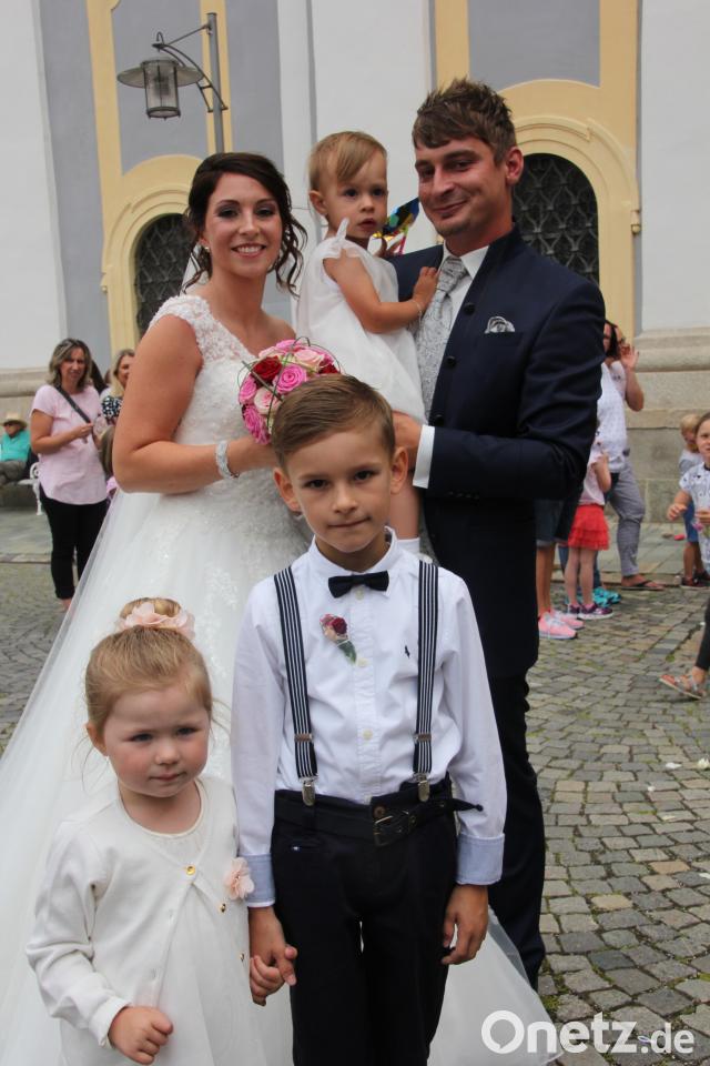 Den kirchlichen Bund fürs Leben schlossen am Samstag in der Basilika die Waldsassener Kindererzieherin Nadine Lohrer und der Mitterteicher Betonbauer Frederich Lercher. Mit dabei war natürlich auch die knapp zwei Jahre alte gemeinsame Tochter Hannah. Die Trauung nahm Stadtpfarrer Thomas Vogl vor, gesanglich wurde die Feier von Gloria Kleinert-Rieß und Simon Hofmann umrahmt. Nach der Trauung wurde das frisch vermählte Paar von Kindern und Erzieherinnen des Wunsiedler Kindergartens - dort arbeitet die Braut - im Ehrenspalier erwartet. Der weltliche Teil der Hochzeit folgte im Forsterhof in Konnersreuth. Das junge Paar wohnt aktuell noch in Mitterteich, wird aber 2019 ins neue Haus nach Waldsassen umziehen.