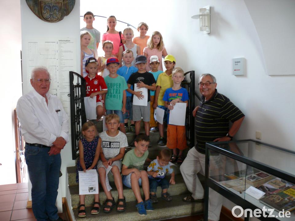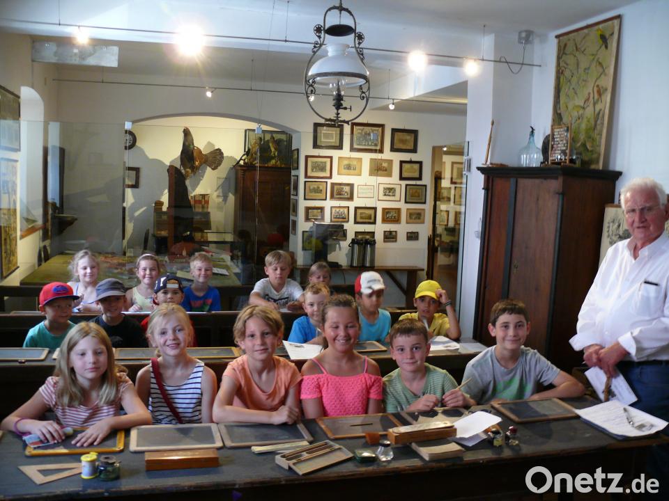 Eine weitere Station war der „Rasp-Laden“. Hier staunten die Mädchen und Buben welch großes Sortiment in so einem „Tante-Emma-Laden“ zu finden gab. Auf dem Zettel fanden die Kinder keine Plastiktasche als Einkaufstüte, weder Musik-CDs, Handys oder Popcorn, dafür aber viele Lebensmittel und Sachen für den täglichen Gebrauch - etwa einen Nachttopf. Zuletzt ging es noch ins Klassenzimmer der alten Münchenreuther Dorfschule: Mit dem „Tatzenstock“ erzählte Walter Fiedler den Kindern, dass dieser bei meist unartigen Buben öfter zum Einsatz kam. Den Rest des Quizbogens ausgefüllt erwartete Manfred Brunner die Kinder beim Ausgang und belohnte ihre Arbeit mit Süßigkeiten.