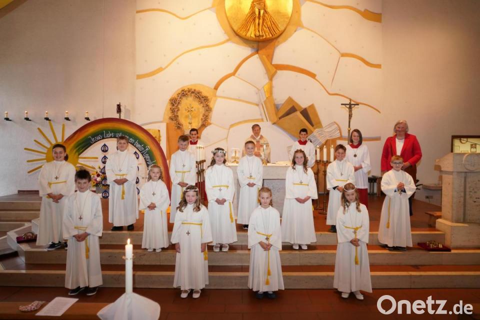 Lange mussten sechs Mädchen und sieben Buben auf diesen Tag warten, am Sonntag durften sie nach zweimaliger coronabedingter Verschiebung zum ersten Mal zum Tisch des Herrn gehen. Dies waren: Nico Barth, Jonas Bauer, Florian Beimler, Miriam Danzer, Stefan Feneis, Vinzenz Grötsch, Marie Hauser, Sarah Kastner, Marie Müller, Felix Riffel, Jana Rupprecht, Felix Stahl und Hanna Tretter. Ein kleines bisschen war trotzdem alles anders, im Gotteshaus waren nur die Familien der 13 Kommunionkinder zugelassen und vor der Feier gab es keinen traditionellen Kirchenzug mit der Trachtenkapelle.