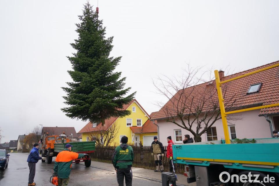 Der Gursnbauer Franz-Josef Beimler und sein Sohn Florian aus Woppenrieth transportierten den außerordentlich schönen Baum mit Unimog und Anhänger zum neuen Standort.