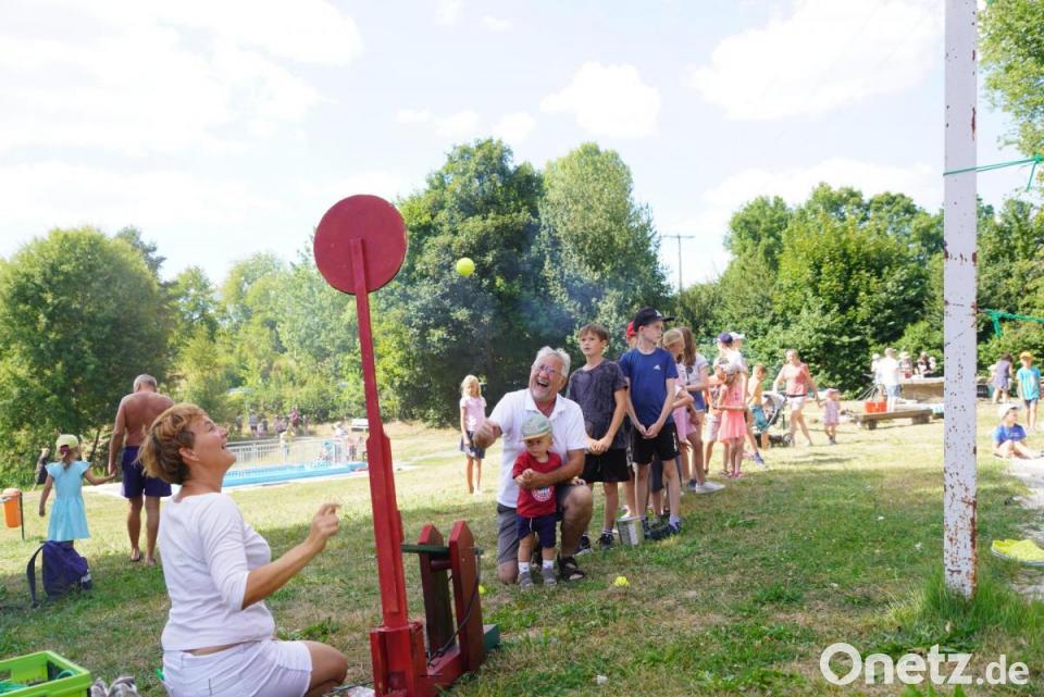 Zu Beginn stimmte Konstantin Stahl mit einem kleinen Seilziehwettbewerb auf den Nachmittag ein. Ulrike Simmerl zeigte den Kleinen das große Schwungtuch, ein Wasserparcours war aufgebaut, an einem aus Gummi gefertigten Kuheuter wurde der Waldthurner Wasser-Melkmeister gesucht. Am Schwungseil zeigten die Mädchen und Buben beim Seilspringen ihr Können und in einem kleinen Planschbecken stellten sie die Geschicklichkeit beim Angeln unter Beweis. Jeder machte wie er meinte, mit einem Tennisball wurde eine kleine runde Tafel angepeilt, die bei Erfolg eine kleine Süßigkeit herauskatapultierte. Selbstverständlich wurde auch spontan ein kleine Fußball- oder Volleyballspiel eingeleitet oder man kühlte sich beim Gang durchs Kneippbecken ab.
