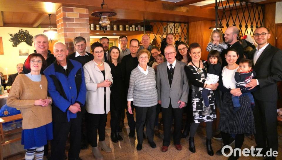 Zur diamantenen Hochzeit gratulierten die Töchter Edith, Wilma und Gudrun, die Enkel Nadja Fabian, Gereon und Sabina sowie die Urenkel Miriam, Moritz, Maya und Leonie. Pfarrer Norbert Götz zelebrierte am Samstagnachmittag für das Paar einen Dankgottesdienst, wobei der Lebensbund nochmal gesegnet wurde. Der Chor "La Musica" hatte die Messe begleitet.