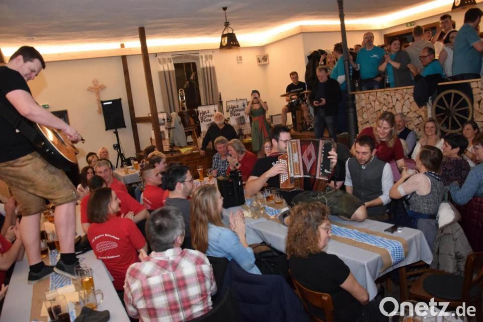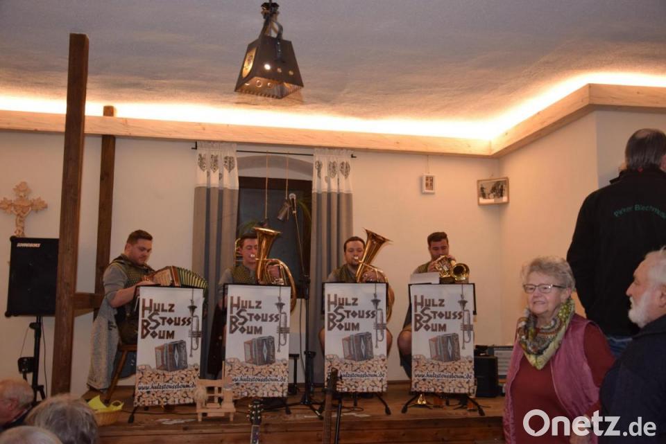 „Was sind schon ‚40 Jahre die Flippers‘? Bei uns feiern wir 'Hulzstoussboum' unser Siebenjähriges“, sagte Chef der Combo, Jonas Kraus. Mit einer großen Geburtstagsparty, die etagenübergreifend im Gasthaus Kühnhauser stattfand, feierte die Gruppe das außergewöhnliche Jubiläum am Samstagabend. Nach dem ersten Stück der "Hulzstoussboum" mit dem Titel „Beim Siffert“, das Posaunist Konstantin Stahl komponiert hatte, ging es Schlag auf Schlag mit fetzigen Stücken quer durch die Volksmusik weiter. Bereits kurz nach Beginn war die Stimmung am Kochen – gut zum Aufwärmen für die vielen Fans, die weit vor Einlassbeginn bereits in einer rund hundert Meter langen Warteschlange in der Kälte ausharren mussten, um sich die besten Plätze zu sichern. Denn derr Eintritt war frei.