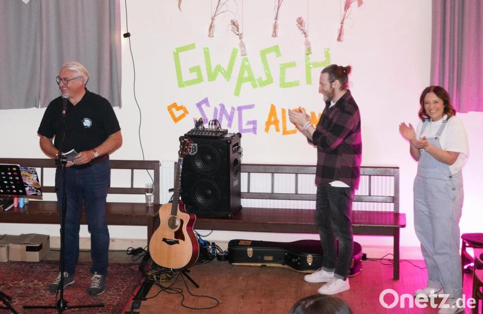 "War des a schöiner Abend", waren sich die Besucher des "Hoffnung für Menschen"-Benefizkonzertes einig. Franzi Glaser und Jens Schmelzle, alias "Gwasch", verwandelten den Waldthurner Kühnhauser-Saal in ein Mitsing-Mekka. Rund 130 Besucherinnen und Besucher waren der Einladung gefolgt. Statt auf einer erhöhten Bühne stand "Gwasch" auf einem alten Orientteppich mitten auf der Tanzfläche. "Die Leute sind heute der Chor", erklärte Franzi Glaser. Mit ausgeteilten Liedheften, die nur Texte, aber keine Noten enthielten, wurden die Gäste Teil der Show. Per Handzeichen gab das Duo die Einsätze, und der Saal sang aus voller Kehle. Der Waldthurner Thomas Ebnet, Vorsitzender des Vereins "Hoffnung für Menschen", war begeistert. Er freute sich, dass der Reinerlös des Konzerts als Schulgeld für Kinder in Südindien verwendet wird. Getragen wurden die Lieder vom Gesang und dem gekonnten Gitarrenspiel von Jens Schmelzle, Franzi Glaser spielte auf der Kazoo. Alle sollten sich bei diesem Konzert frei im Raum bewegen. Thomas aus Waldthurn kam hierbei bei seinem ersten Liedwunsch gar die Rolle eines Wunderheilers zu. Er wünsche sich Neil Diamonds "Sweet Caroline". So mancher bis dahin fußkranke Konzertbesucher entwickelte schon hier eine doch erstaunliche Bewegungsfähigkeit. Es folgten Hits wie "Hallo Klaus" von Nickerbocker und Biene, "Cordula Grün" sowie von Udo Jürgens. Albert aus Kaimling forderte "Sweet Child o' mine" von Guns 'n' Roses. Sogar der Waldthurner Bürgermeister Josef Beimler war von einem Tschechienausflug eingetroffen und genoss die Atmosphäre. Zum großen Finale wurden bei "Über sieben Brücken musst du gehn" die Handylichter gezückt. Mit "Angels" von Robbie Williams und "Hey Jude" von den Beatles entließ "Gwasch" die begeisterte Menge schließlich in die kühle Waldthurner Nacht.