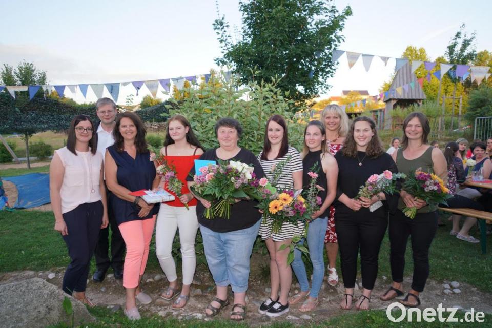 Pfarrer Götz gratulierte im Namen des gesamten Kindergartens der Waidhauserin Magdalena Mensch zu deren ausgezeichneten Ergebnis bei ihrer Prüfung zur Erzieherin, sie wird zukünftig in Waldthurn die blaue Gruppe übernehmen. Maria Voith aus Albersrieth darf sich nach dem Erzieherpraktikum in der Kita St. Josef Kinderpflegerin nennen. Sie wird nun ihrer Ausbildung zur Erzieherin fortsetzen. Götz sagte auch Berufspraktikantin Lisa Wagner aus Eslarn genauso wie Selina Meindl aus Vohenstrauß (Erzieherpraktikantin) "Vergelt`s Gott".